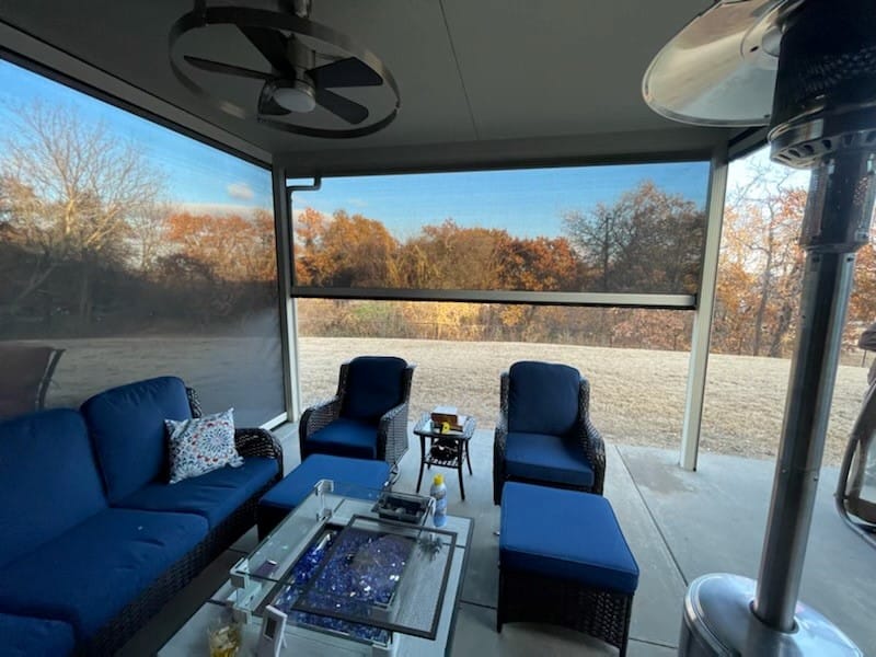 Oklahoma is known for its scorching summers, gusty winds, and occasional downpours. Motorized screens shield your patio from direct sunlight, reduce wind exposure, and prevent rain from entering your space. This allows you to enjoy your patio regardless of the weather.